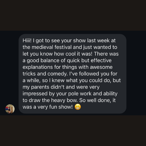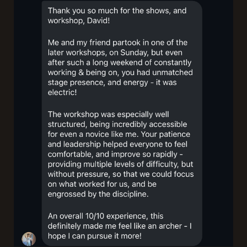 Archery Consultation ➶ Workshops ➶ Event Performances ➶ Guest Appearances ➶ Acting ➶ Stage Performance ➶